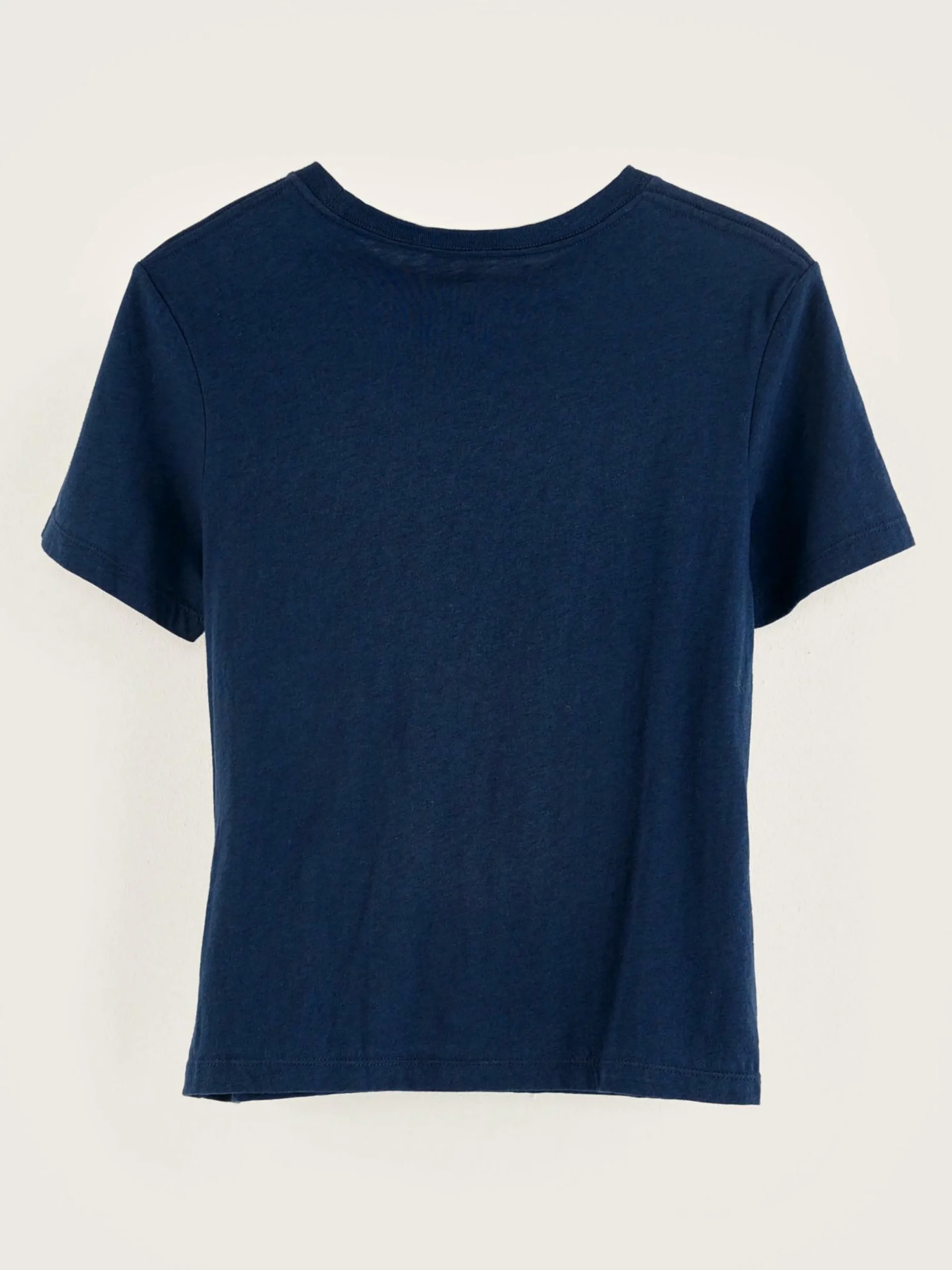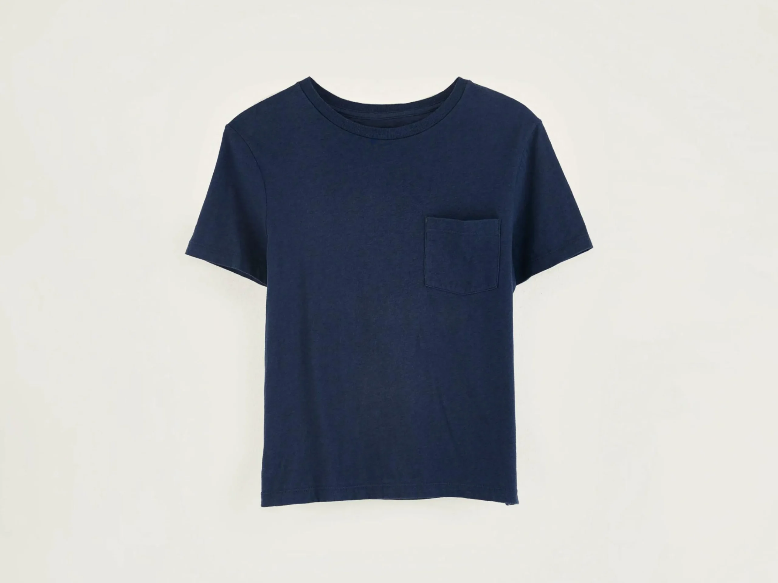 T-shirt droit et décontracté avec poche plaquée en jersey de coton bleu.