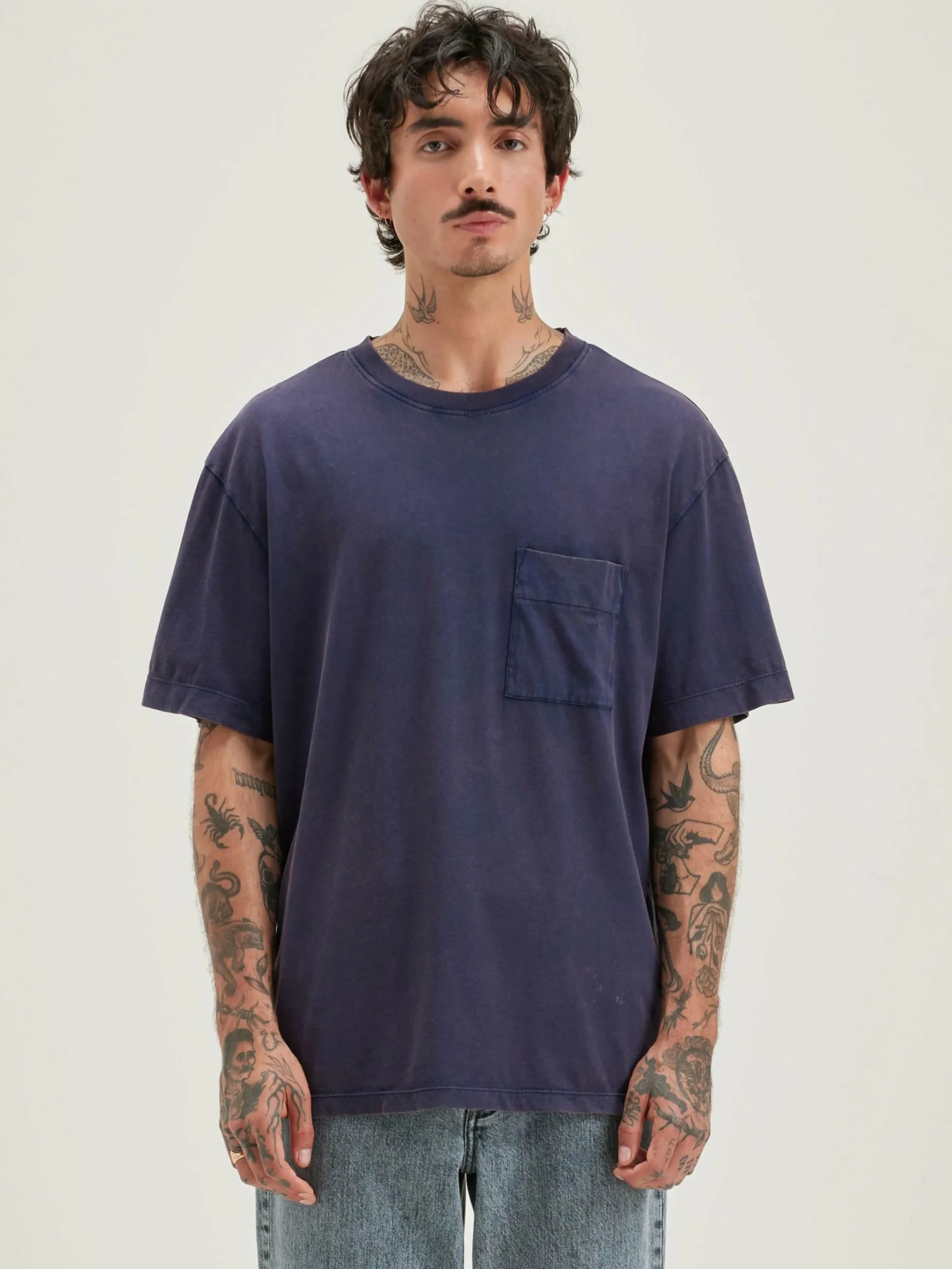 T-shirt oversize en jersey de coton couleur bleu foncé.