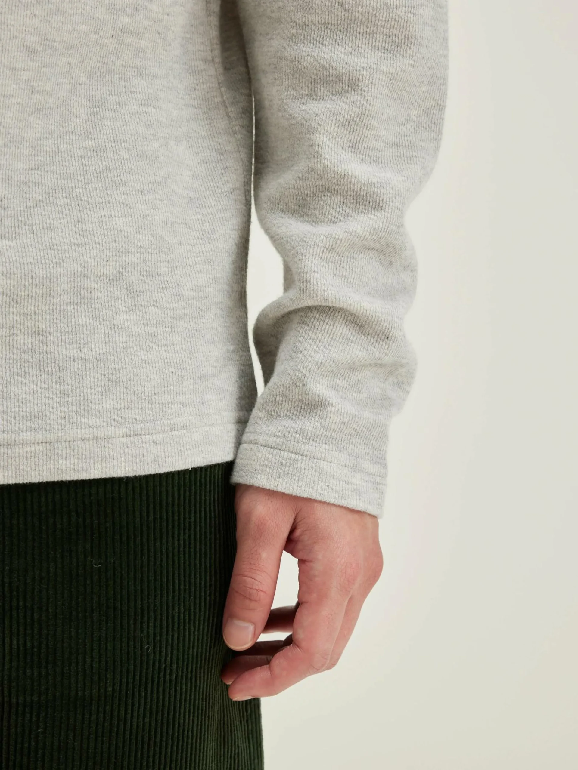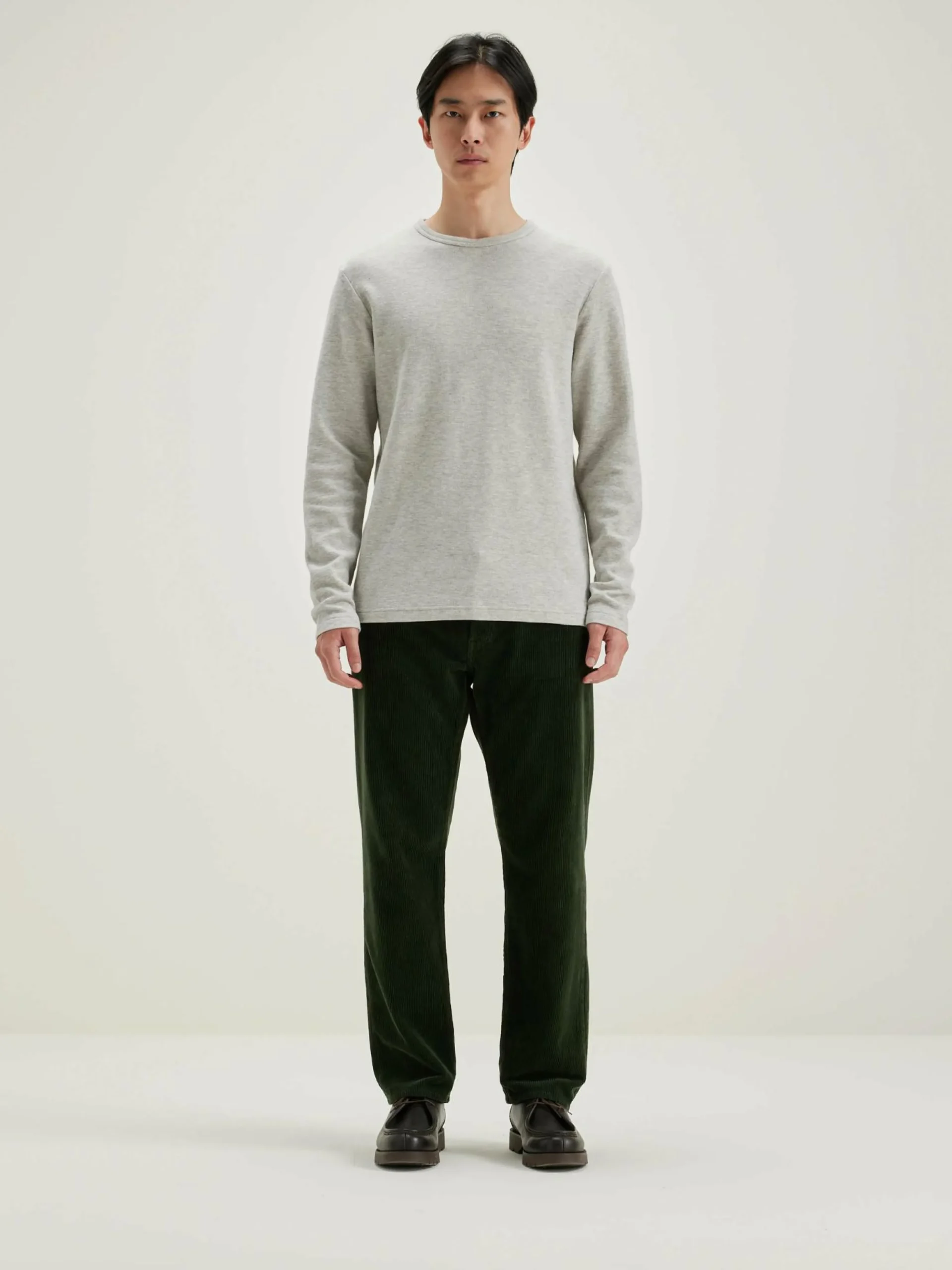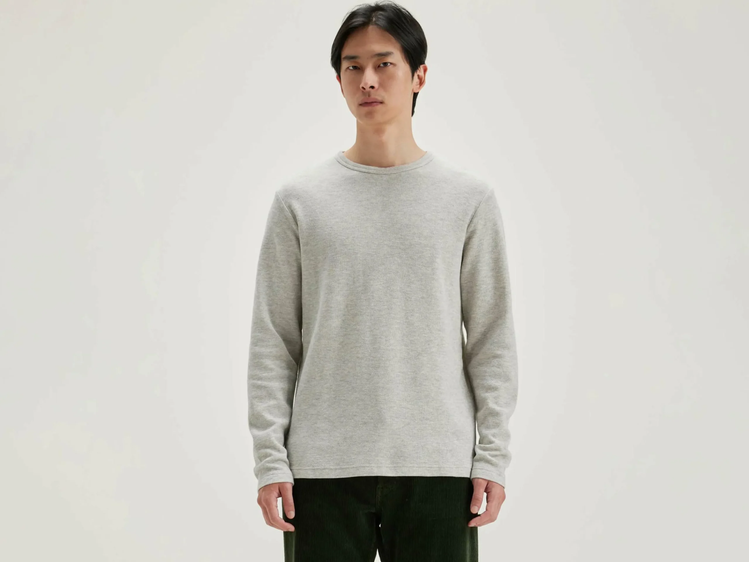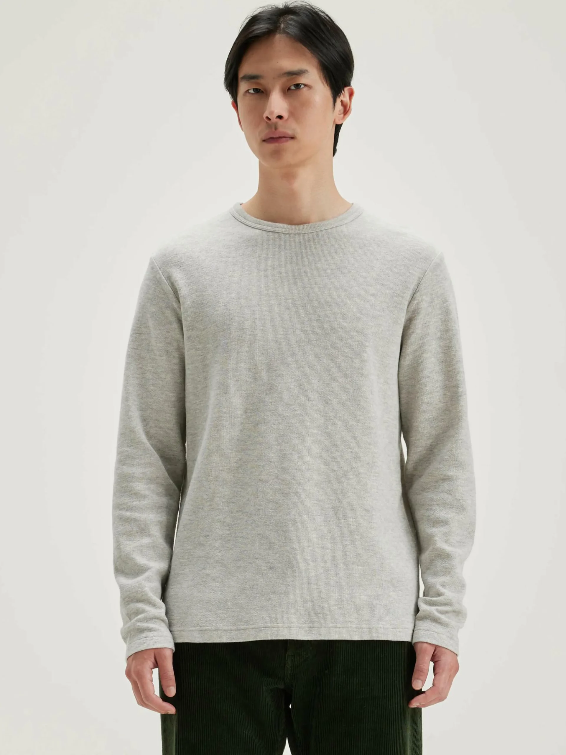 T-shirt à manches longues et col rond en jersey de coton double face gris chiné.