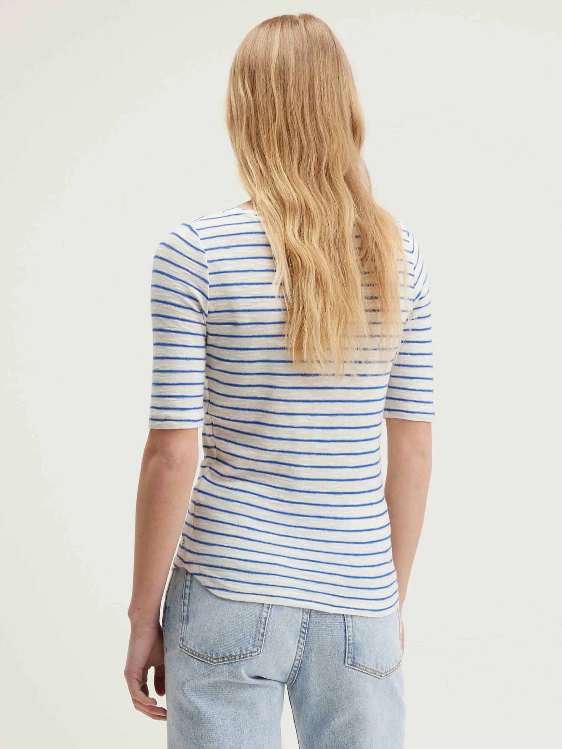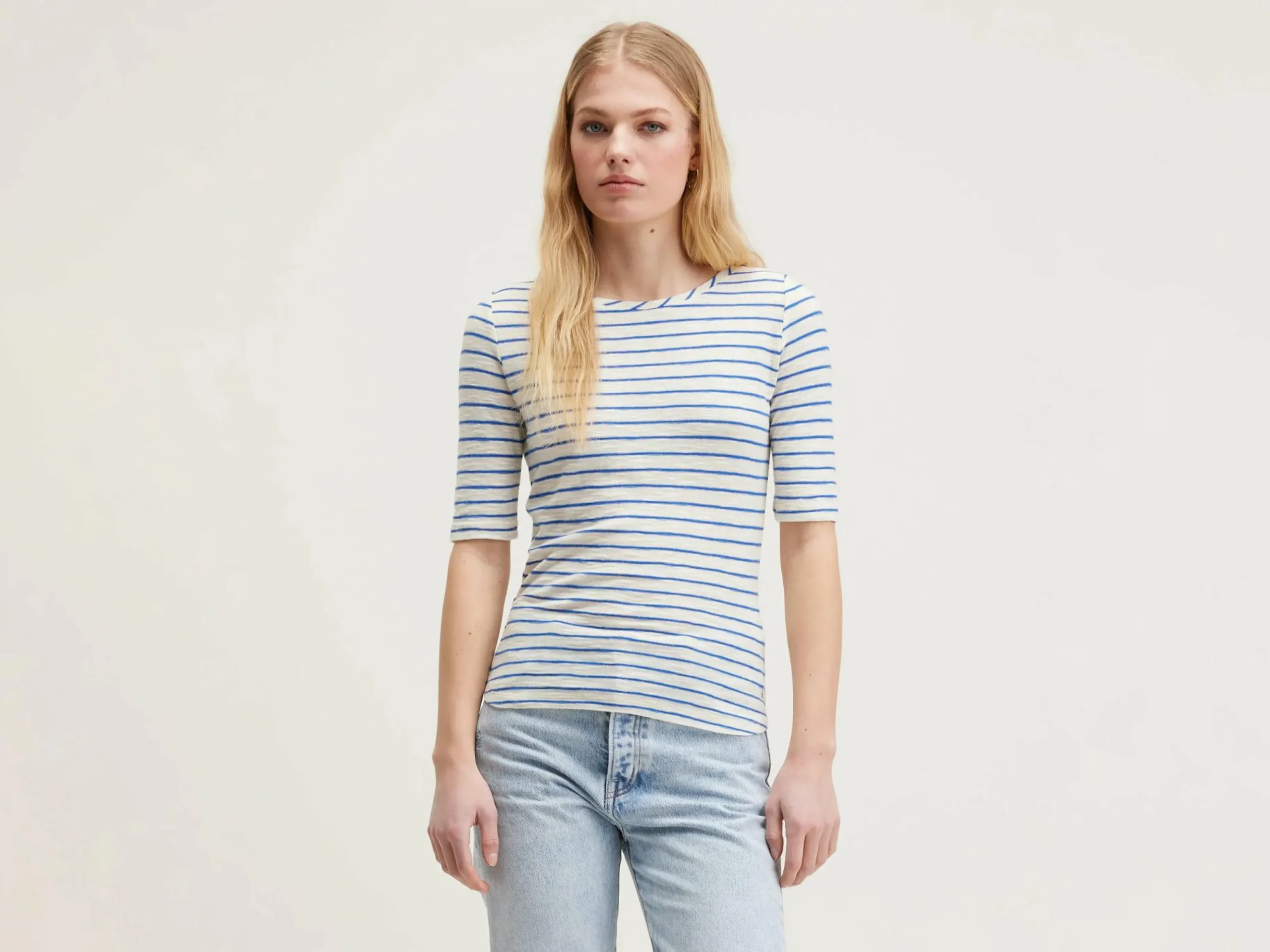 T-shirt slim à encolure dégagée et manches courtes en jersey de coton rayé.