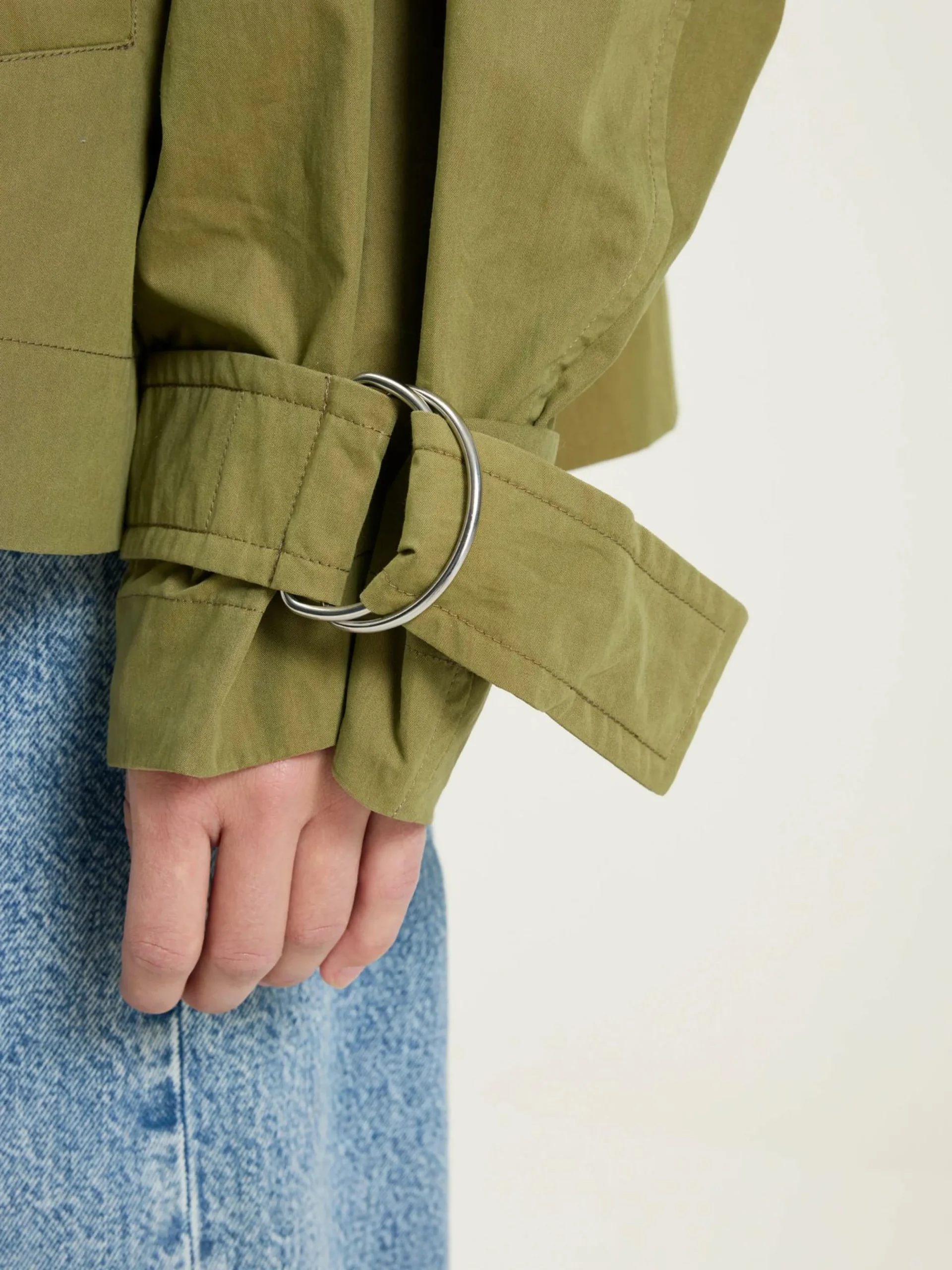 Veste coupe boxy, manches raglan et col montant en toile khaki.