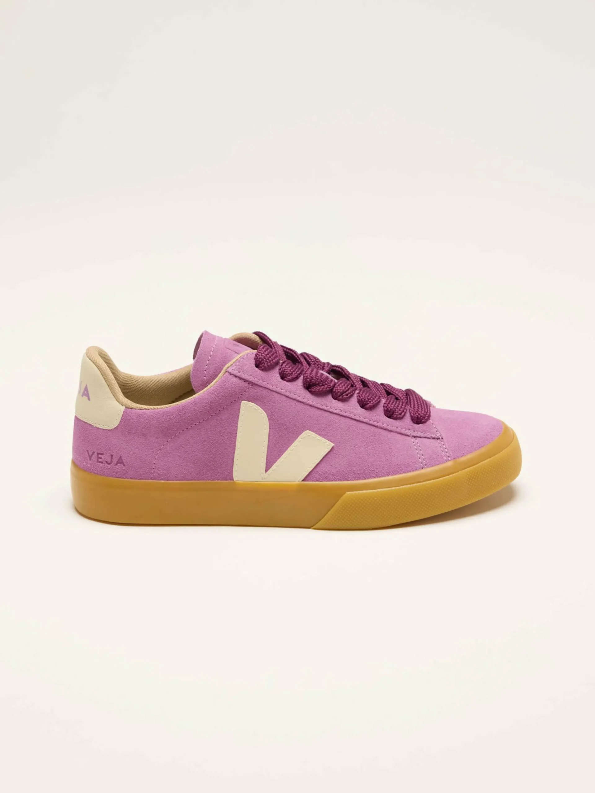 Les sneakers en daim Veja Campo Bold Mulberry Pierre sont dotées d’une semelle extérieure en caoutchouc amazonien recyclé et de larges lacets ton sur ton.