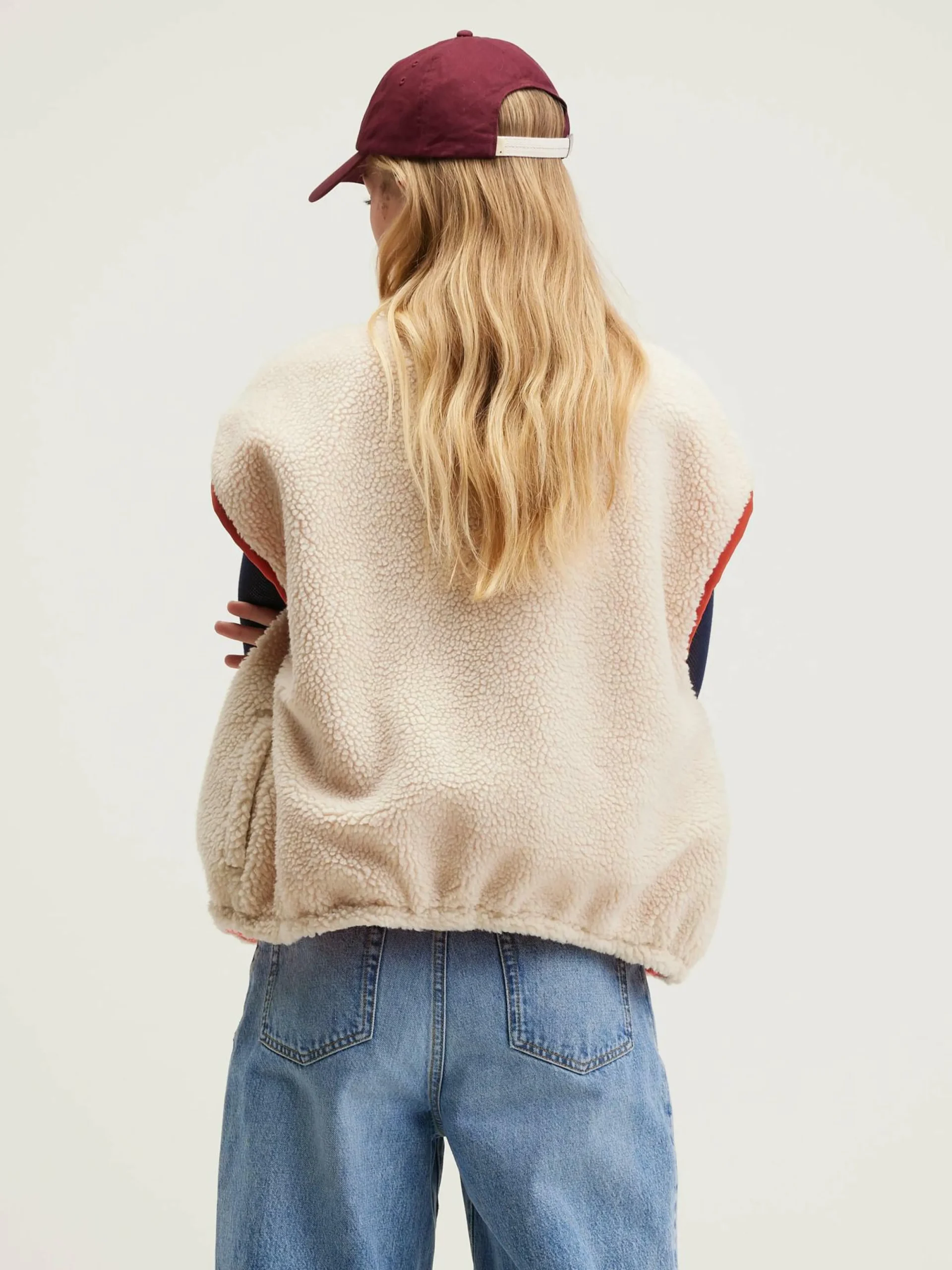Surchemise sans manches en teddy, coupe oversize et réversible.